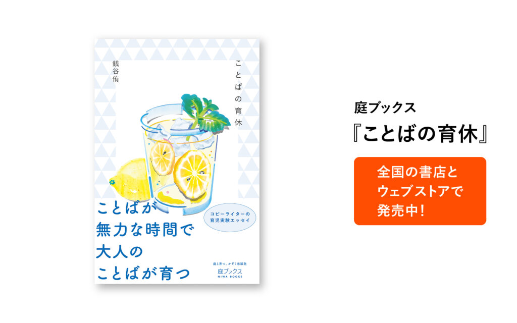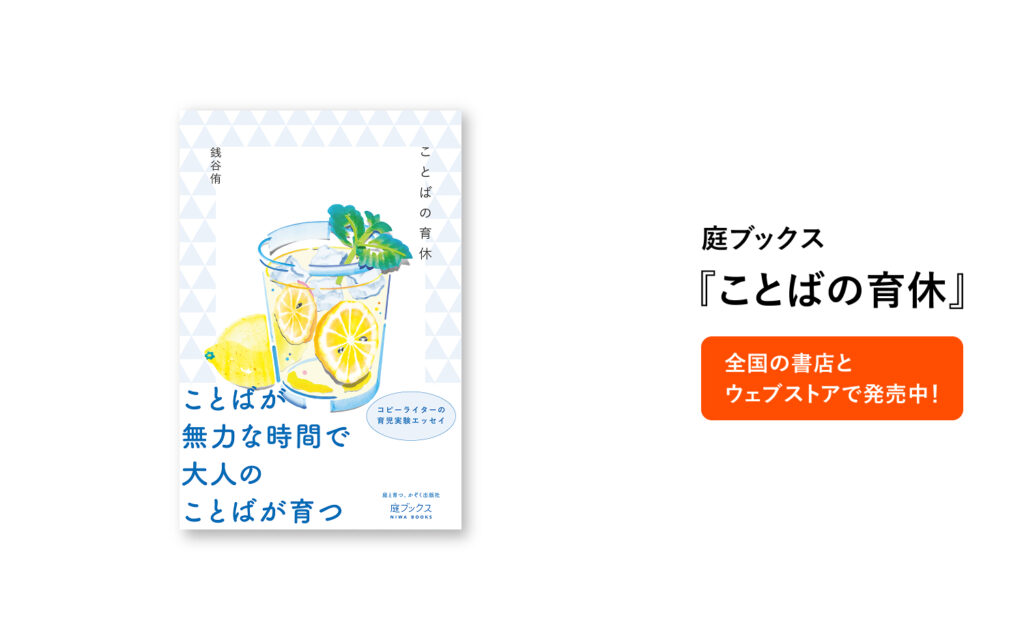 あたらしい投稿 慣らし保育が鳴らす音 / 育児エッセイ2歳 『ことばの育休』のこと | 庭ブックス活動記 日本中に顔見知りの本屋さんを増やしたい | 庭ブックス活動記 日々のこと 慣らし保育が鳴らす音 / 育児エッセイ2歳 中動態の海 / 育児エッセイ1歳9〜10ヶ月 とおと、と呼ばない / 育児エッセイ1歳7〜8ヶ月 はだかの公園 / 育児エッセイ1歳5〜6ヶ月 はじめてのさんぽ / 育児エッセイ1歳3〜4ヶ月 いのりとねがい / 育児エッセイ 1歳2〜3ヶ月 「日々のこと」一覧 ことばのこと SaaSのブランディングに、コピーライターができること① <freee2年半の奮闘編> 2022年10月25日 2017年4月5日 あなたの脳にも移植できる「コピーライティングシステム」公開! 2017年4月5日 コピーライティングを学ぶための本 BEST15 2017年3月20日 電通や博報堂のクリエーティブテストに、着実に合格する方法。 2022年10月31日 こどもの名前に、コピーライターはどう向き合うか 2018年2月14日 「“好き”に変はない展」全コピー (2015〜2017) 「ことばのこと」一覧 庭ブックスのこと 『ことばの育休』のこと | 庭ブックス活動記 日本中に顔見知りの本屋さんを増やしたい | 庭ブックス活動記 庭ブックス、はじめます 「庭ブックスのこと」一覧 記事一覧はこちら